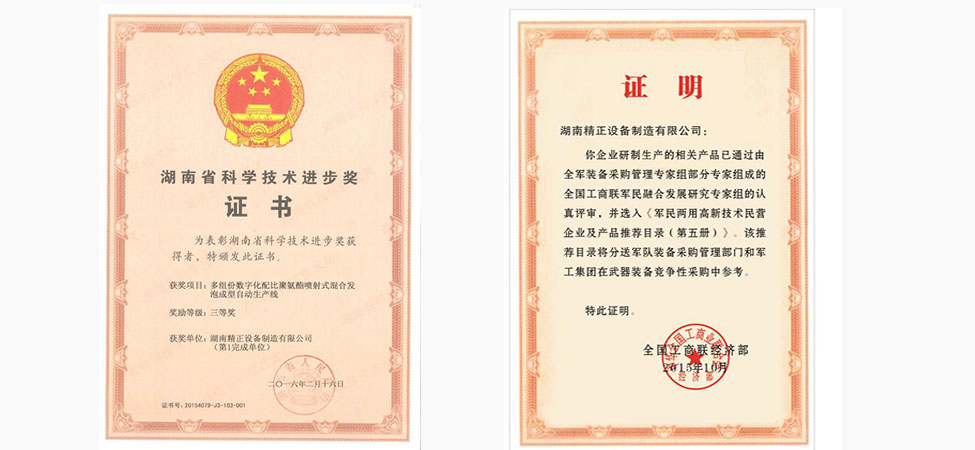 获批国家高新技术企业;公司四组份发泡机获得科技型中小企业技术创业基金立项,并获得国家科技部科技型中小企业技术创新基金项目管理中心资助资金;JHF聚氨酯高压发泡机企业标准审核批准,标准号为Q/DBJZ001-2009。